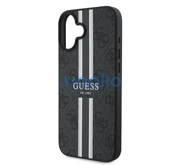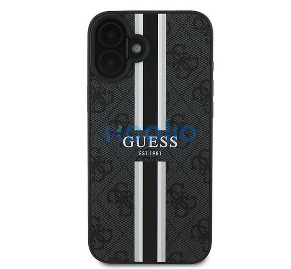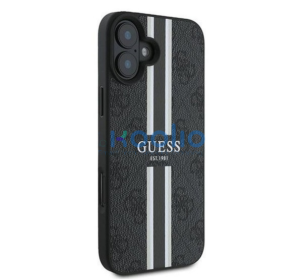 Guess 4G Printed Stripes MagSafe Apple iPhone 16 Plus hátlap tok, fekete/barna GUHMP16MP4RPSK