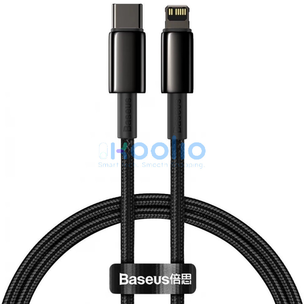 USB Type-C töltő- és adatkábel, Lightning, 200 cm, 20W, törésgátlóval, gyorstöltés, Baseus Tungsten Gold, CATLWJ-A01, fekete