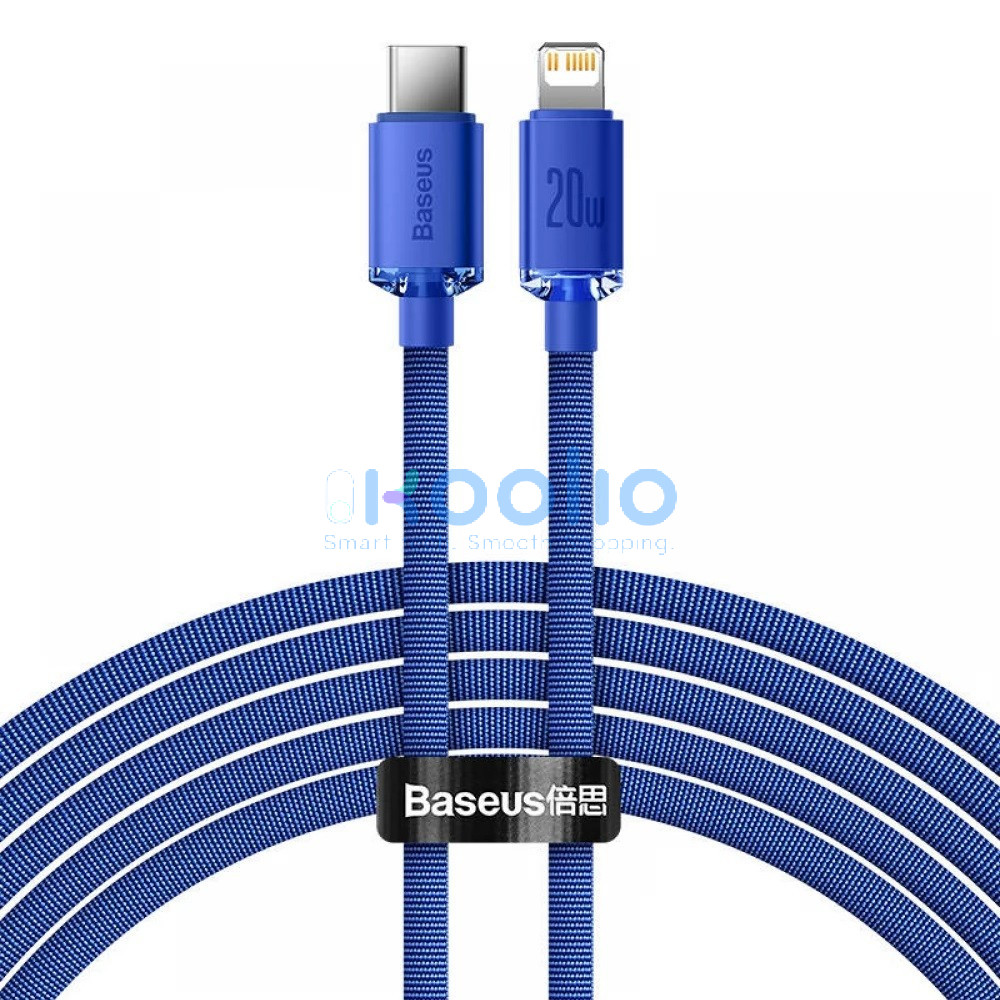 USB Type-C töltő- és adatkábel, Lightning, 200 cm, 20W, gyorstöltés, PD, cipőfűző minta, Baseus Crystal Shine, CAJY000303, kék