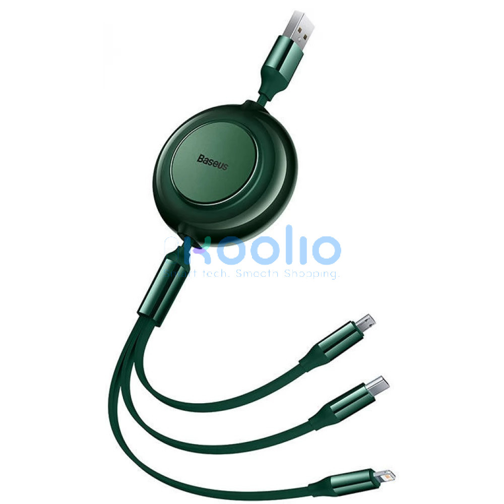 USB töltő- és adatkábel 3in1, USB Type-C, Lightning, microUSB, 110 cm, 3500 mA, gyorstöltés, lapos, feltekerhető, Baseus Bright Mirror 2, CAMJ010006, sötétzöld
