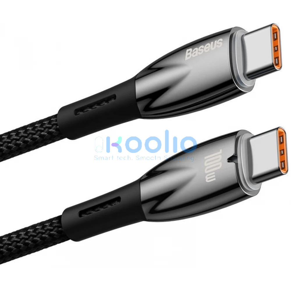 USB Type-C töltő- és adatkábel, USB Type-C, 100 cm, 5000 mA, 100W, törésgátlóval, gyorstöltés, PD, Baseus Glimmer, CADH000701, fekete