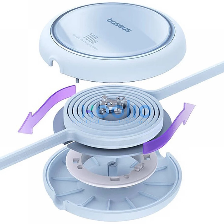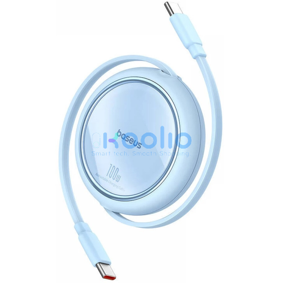 USB Type-C töltő- és adatkábel, USB Type-C, 100 cm, 100W, gyorstöltés, PD, lapos, feltekerhető, Baseus Free2Draw, világoskék