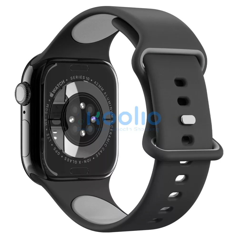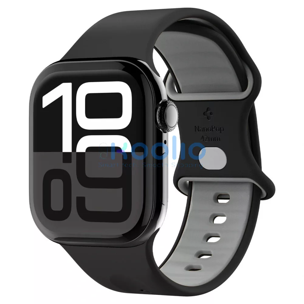 Apple Watch 4-6, SE, SE (2022), SE (2025) (38 / 40 mm) / Watch 7-9 (41 mm) / Watch 10-11 (42 mm), szilikon pótszíj, állítható, Spigen Nano Pop, fekete/szürke