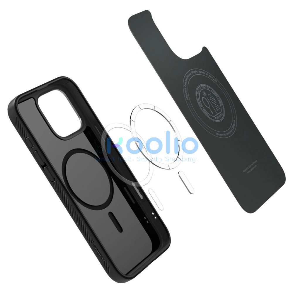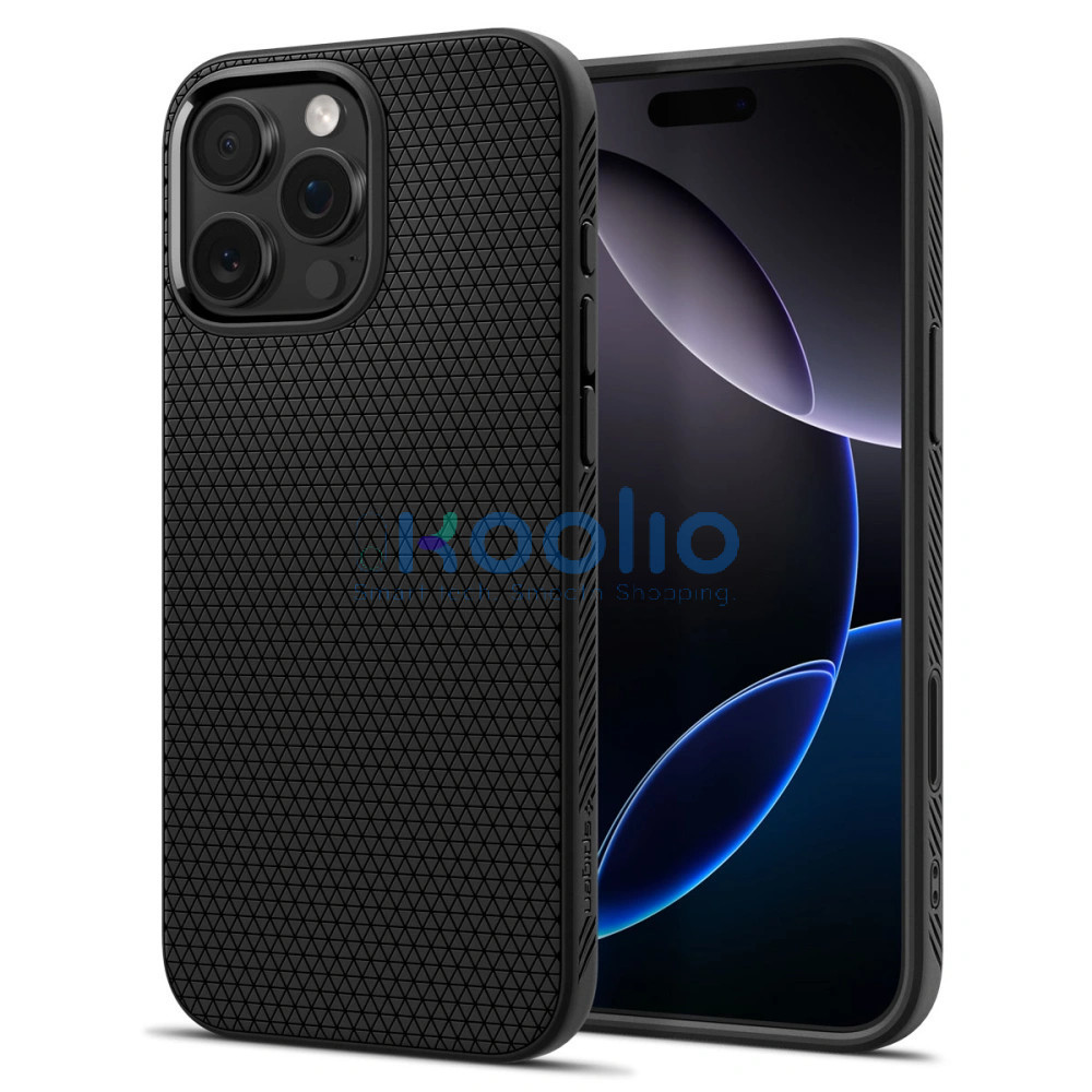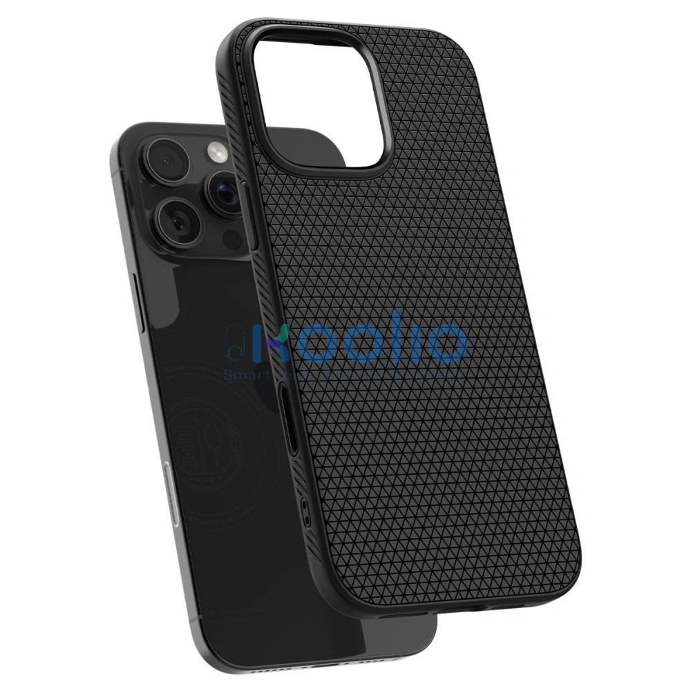 Apple iPhone 16 Pro, Szilikon tok, Magsafe töltővel kompatibilis, háromszög minta, érintő funkciós gombfedéllel, Spigen Liquid Air "T" Mag, fekete