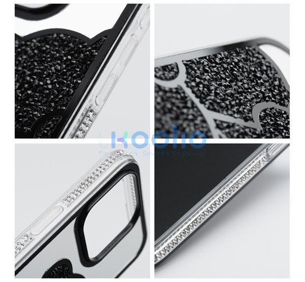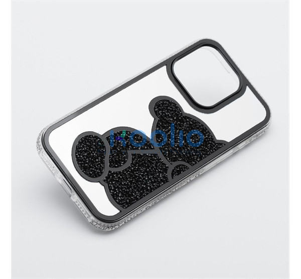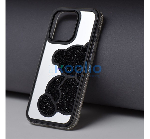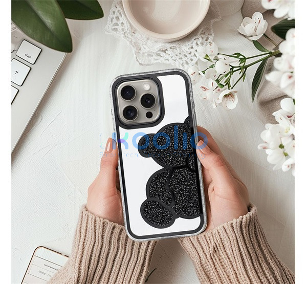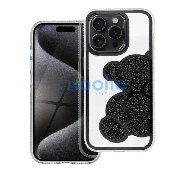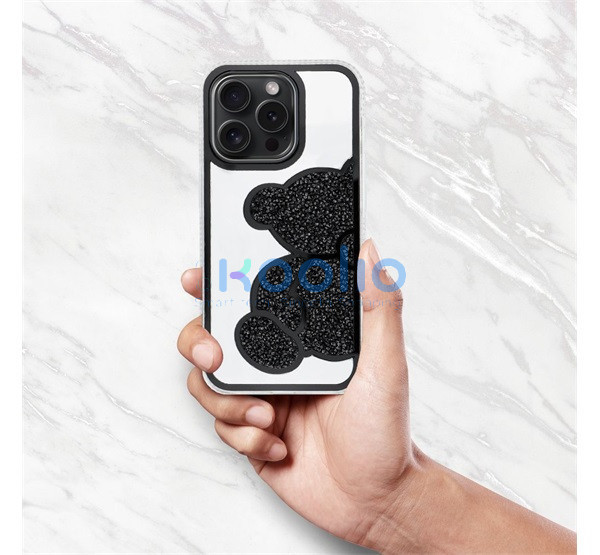 Teddy Bear iPhone 16 Plus csillogó köves tok, fekete