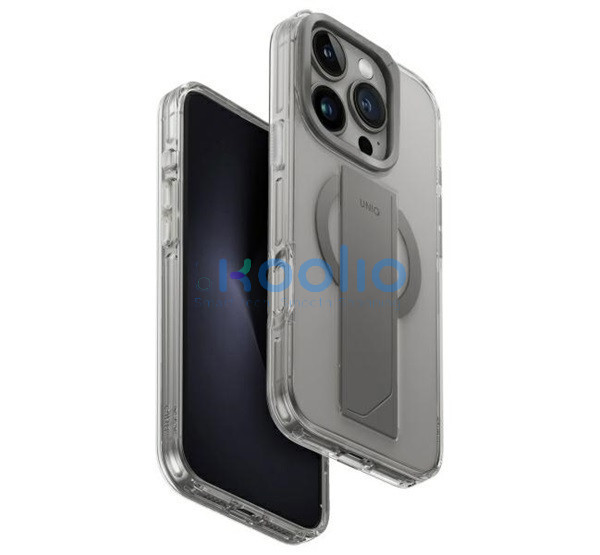 Uniq Heldro Max iPhone 16 Pro MagSafe tok kitámasztóval, átlátszó
