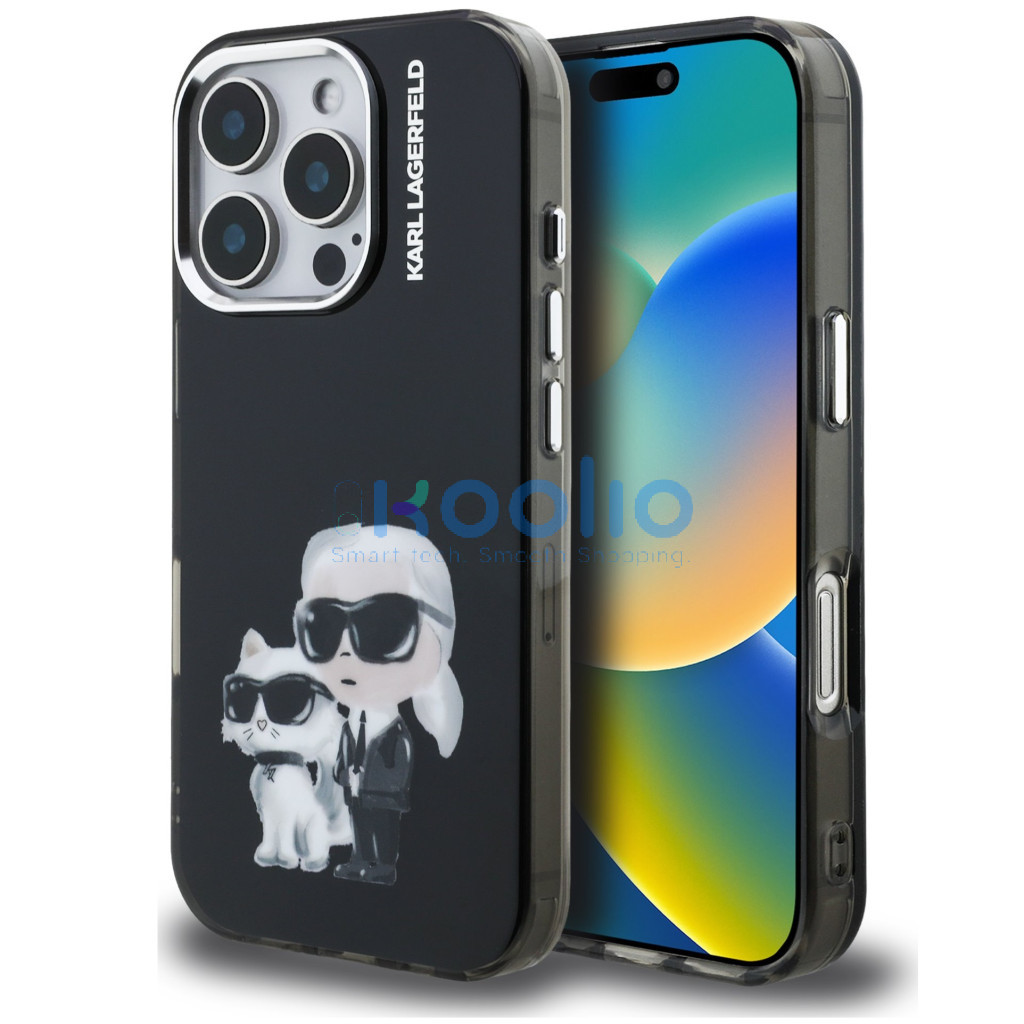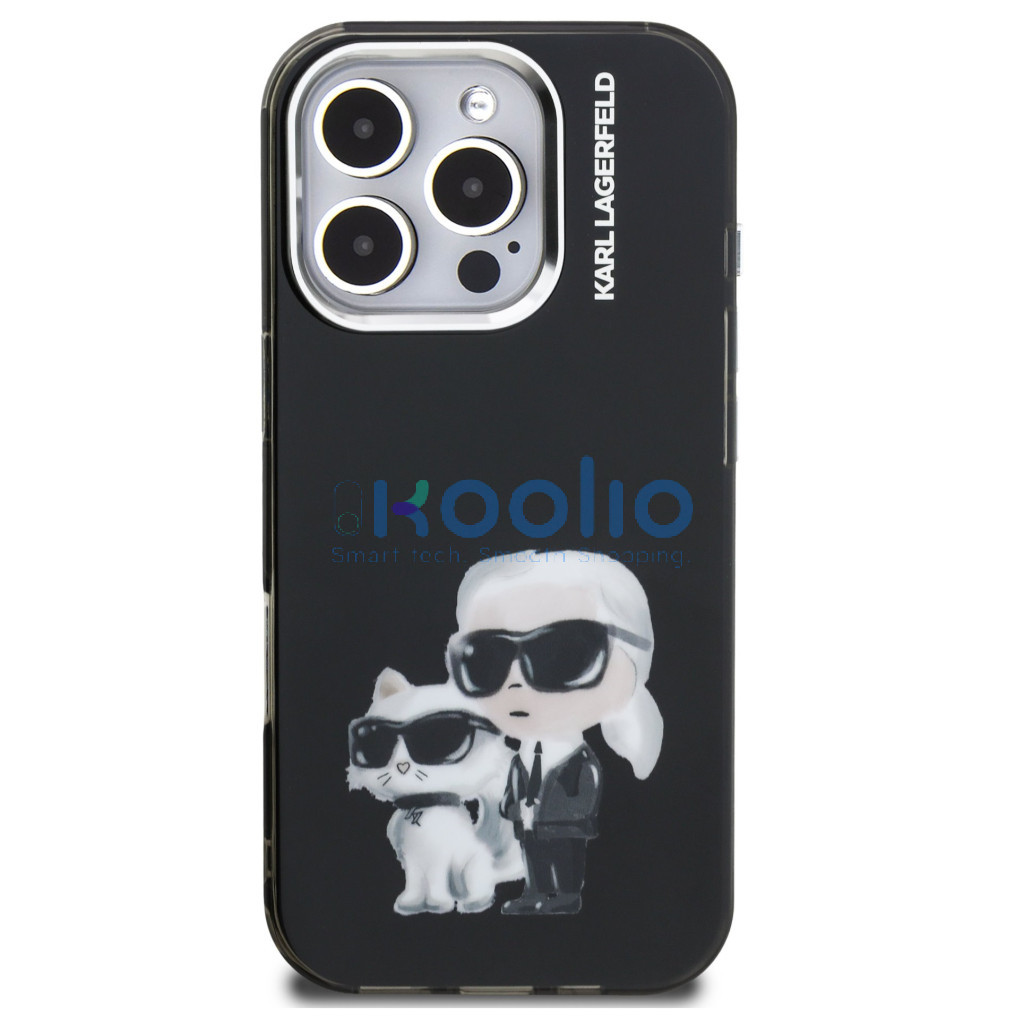 Karl Lagerfeld IML Aquarelle Karl and Choupette iPhone 16 Pro hátlap tok, fekete