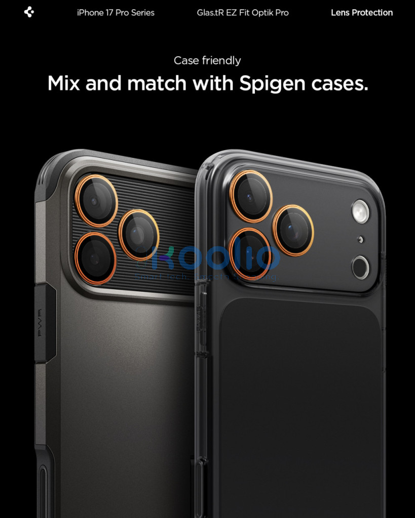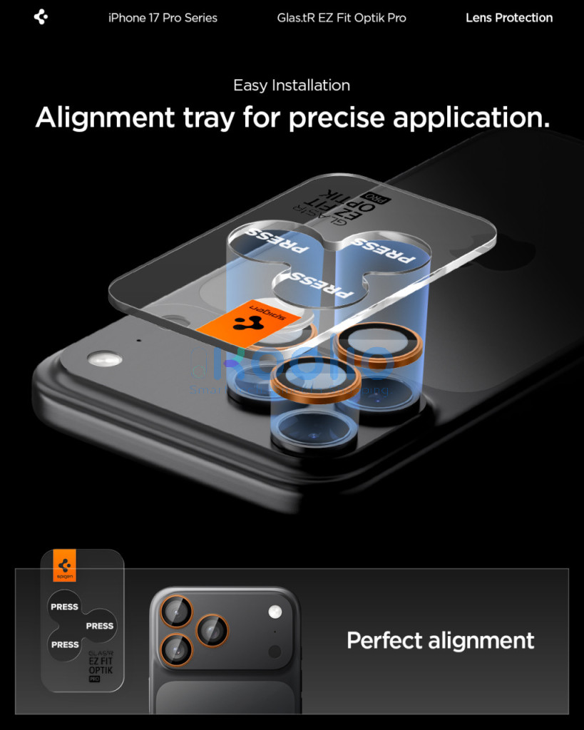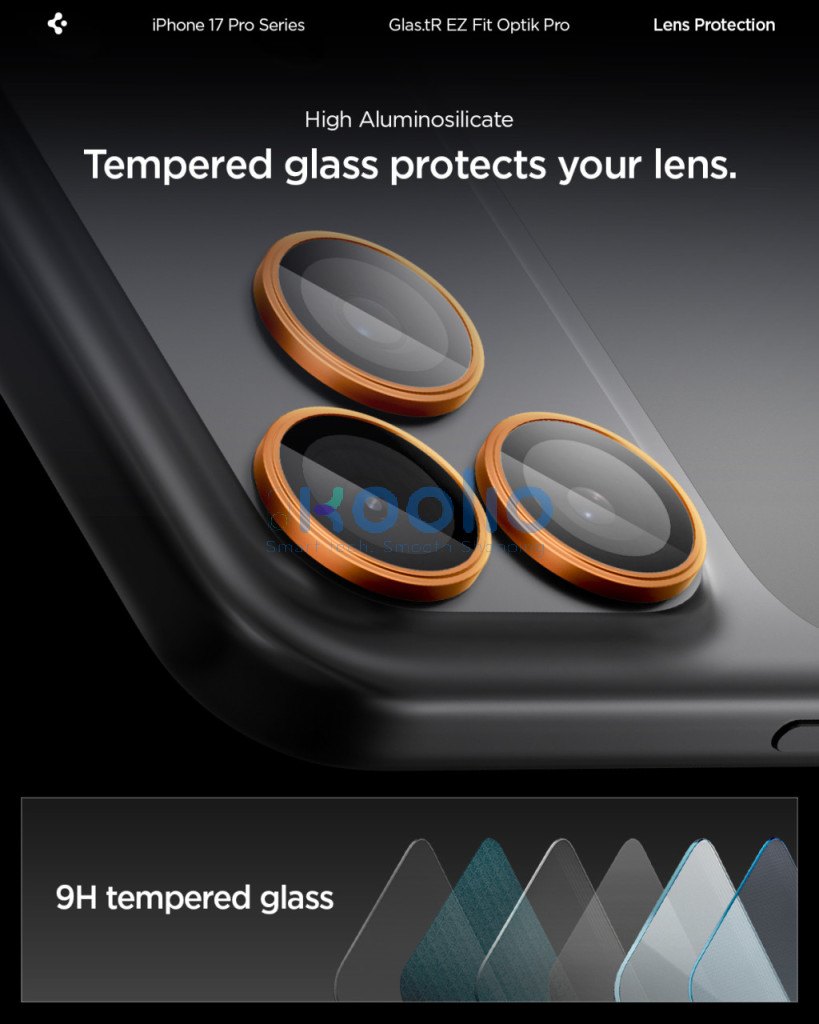 Spigen Glas.tR EZ Fit Optik Pro Apple iPhone 17 Pro / 17 Pro Max / 16 Pro / 16 Pro Max / 15 Pro / 15 Pro Max / 14 Pro / 14 Pro Max, Tempered kameralencse-védő fólia felhelyező kerettel, narancs (2db)