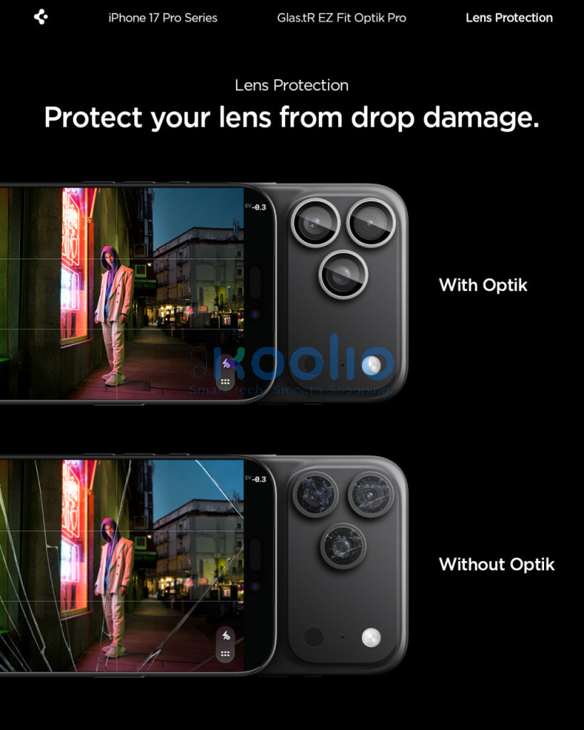 Az Optik Pro az ideális lencsevédő – teljes mértékben lefedi a kamera részeit, és védelmet nyújt a karcolások és törések ellen.