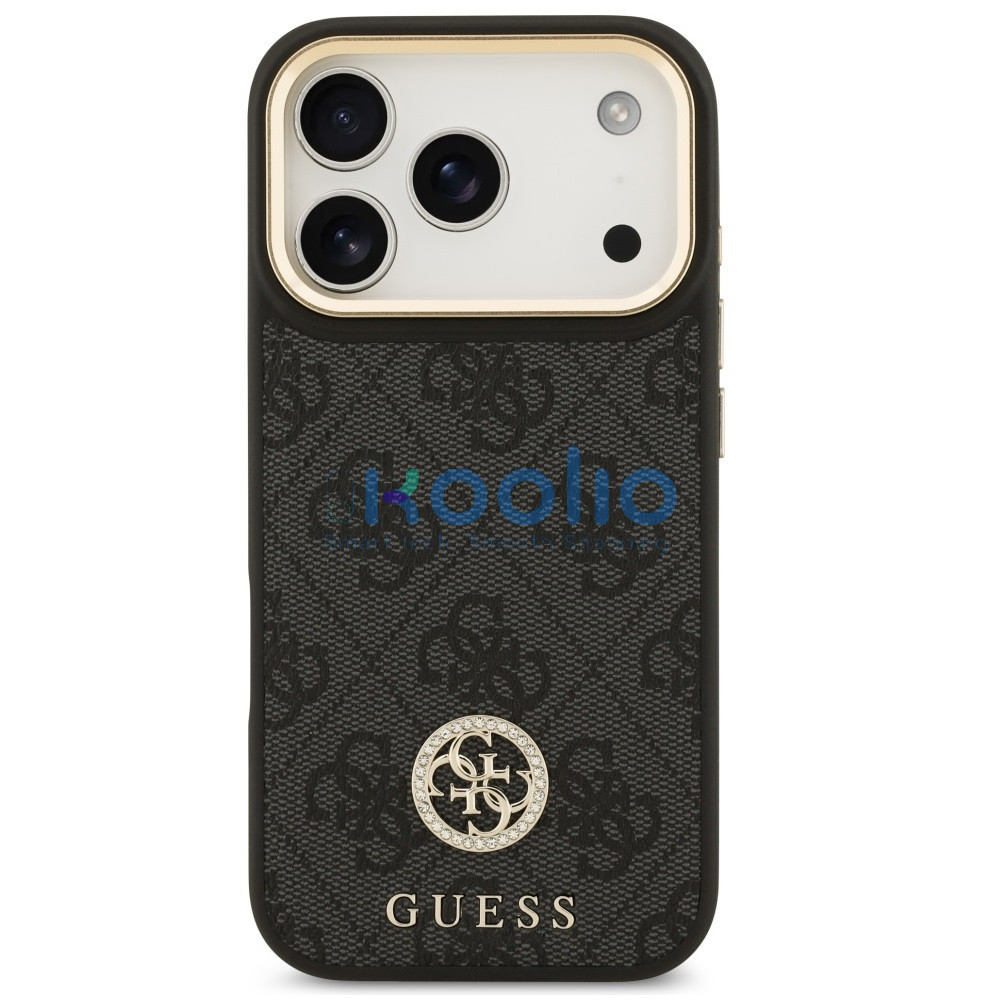 A tok alján egy díszes Guess 4G embléma található, csillogó kristályokkal díszítve, amelyet egy finom Guess logó egészít ki.