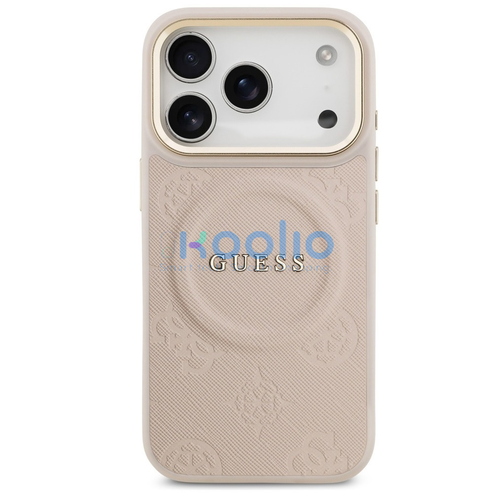 Guess Peony Hot Stamp Apple iPhone 17 Pro MagSafe tok kameravédő peremmel, rózsaszín-arany