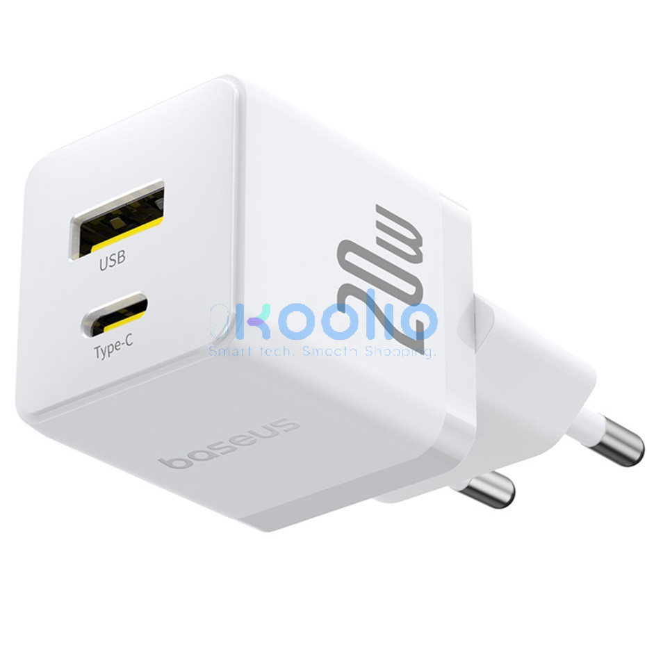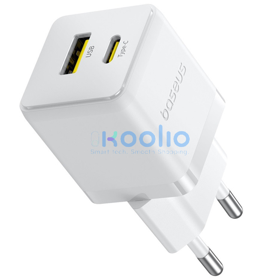 Baseus Palm 2in1 USB-C-USB-A hálózati gyorstöltő adapter, 20W, fehér