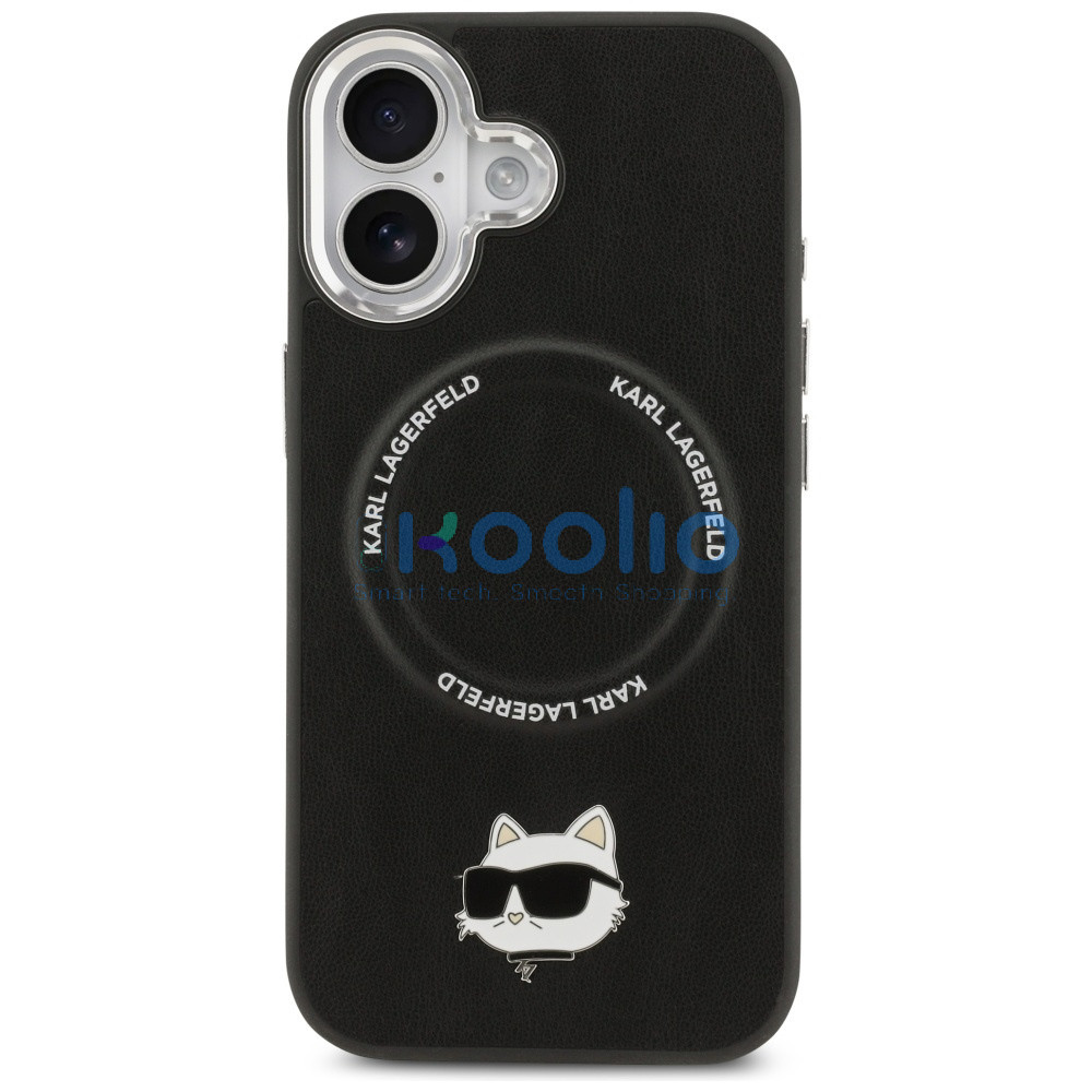Karl Lagerfeld Choupette Pin Apple iPhone 17 MagSafe kompatibilis hátlap tok, fekete