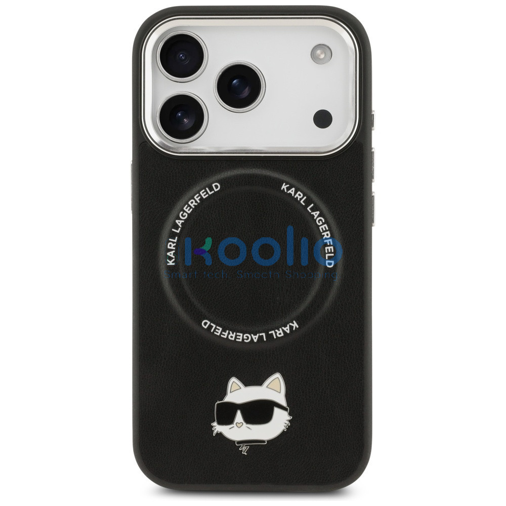 Karl Lagerfeld Choupette Pin Apple iPhone 17 Pro MagSafe kompatibilis hátlap tok, fekete