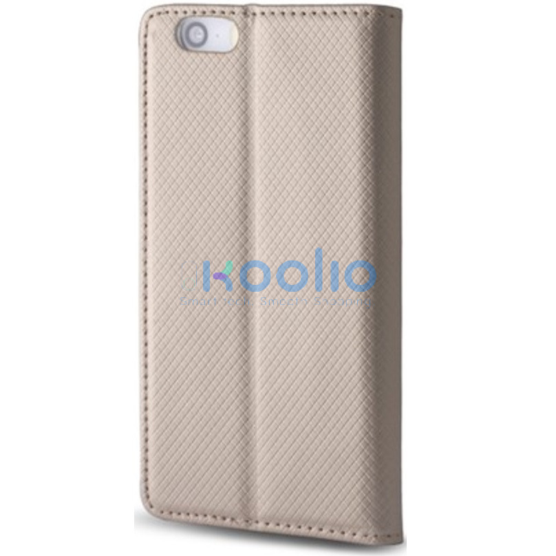 Apple iPhone 15 Plus, Oldalra nyíló tok, stand, Smart Magnet, arany