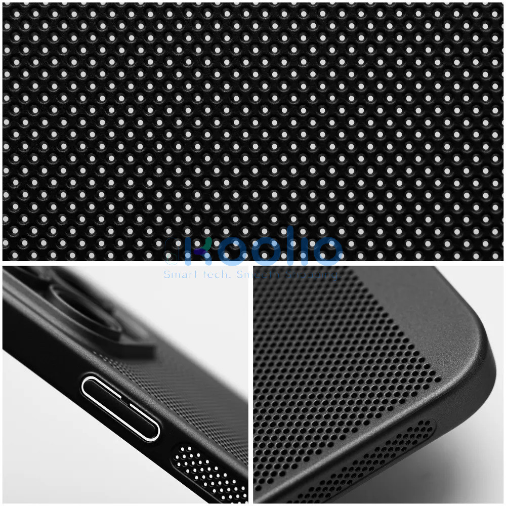 Apple iPhone 17 Pro, Műanyag hátlap védőtok, légáteresztő, lyukacsos minta, Breezy, fekete