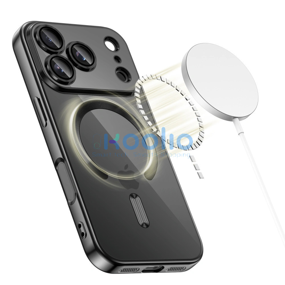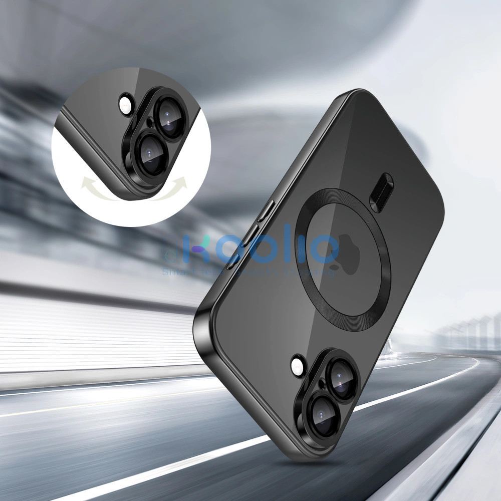 Apple iPhone 17, Műanyag hátlap védőtok + szilikon keret, közepesen ütésálló, Magsafe töltővel kompatibilis, fényes keret, Magflex Magsafe, átlátszó/fekete