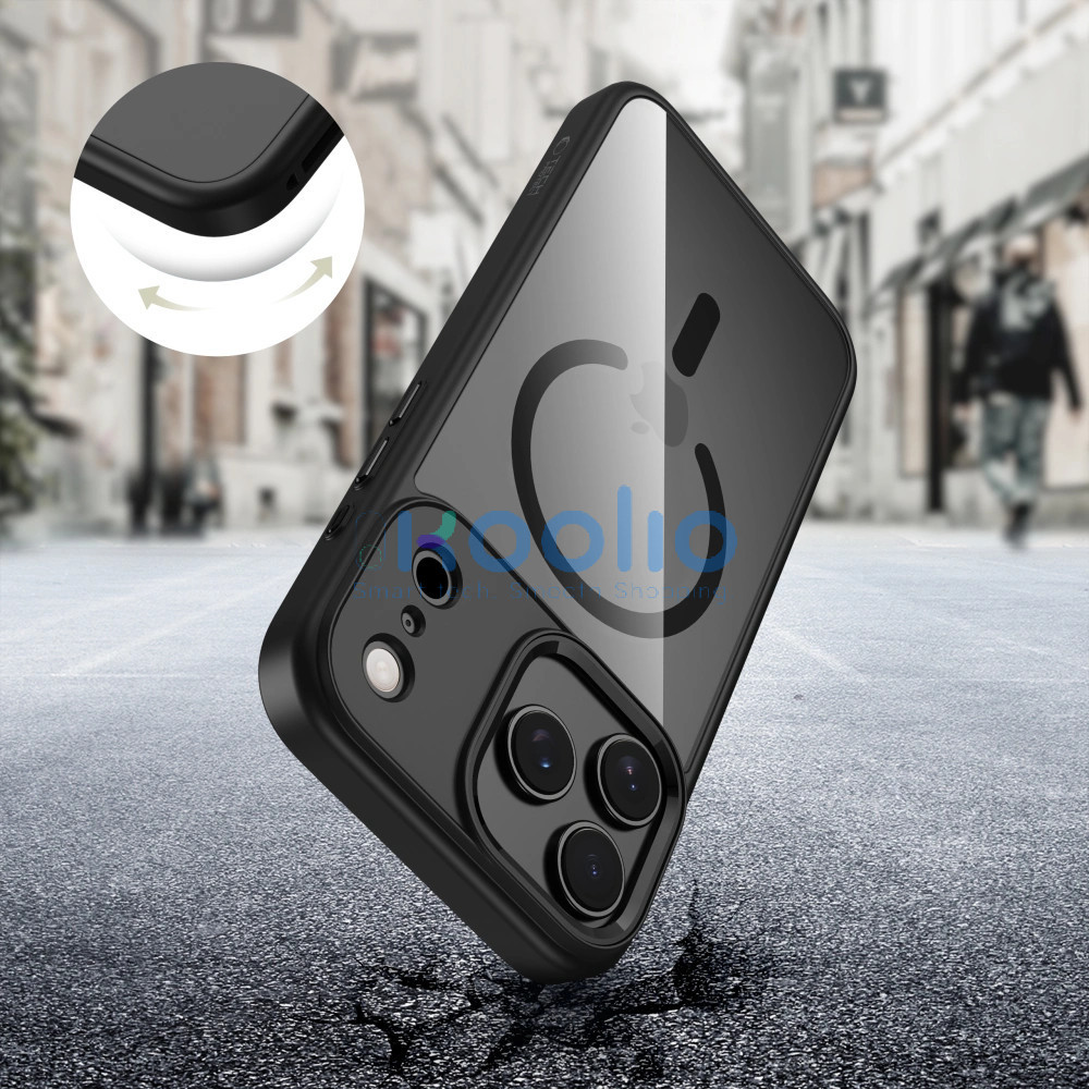 Apple iPhone 17 Pro, Műanyag hátlap védőtok + szilikon keret, Magsafe töltővel kompatibilis, Magmat Magsafe, átlátszó/fekete