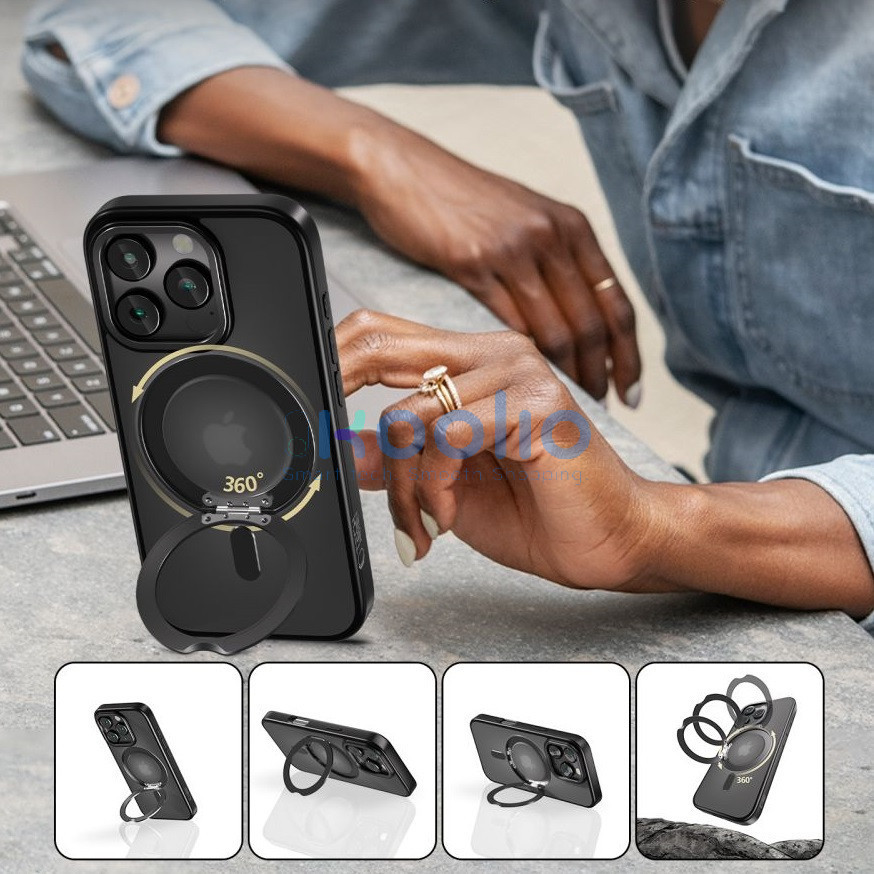A tok kulcseleme egy 360 fokban forgatható gyűrű, amelyet különféle módokon lehet használni – állványként a kényelmes filmnézéshez, ujjfogóként a telefon biztonságosabb kézben tartásához, valamint a MagSafe funkciók támogatásához. Tökéletesen kompatibilis a MagSafe kiegészítőkkel, mint például a töltőkkel vagy a mágneses tartókkal.