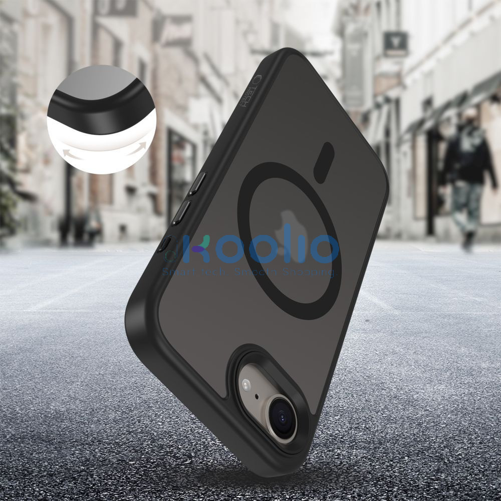 Apple iPhone 16e / 17e, Műanyag hátlap védőtok + szilikon keret, Magsafe töltővel kompatibilis, Magmat Magsafe, áttetsző/fekete