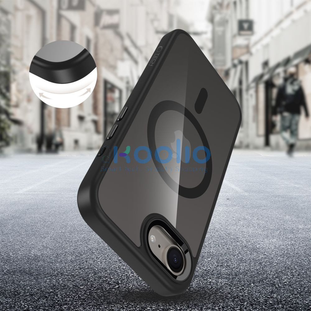 Apple iPhone 16e / 17e, Műanyag hátlap védőtok + szilikon keret, Magsafe töltővel kompatibilis, Magmat Magsafe, átlátszó/fekete
