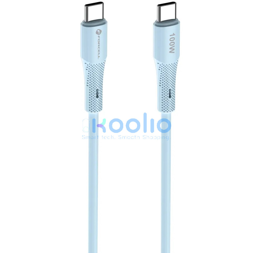 USB Type-C töltő- és adatkábel, USB Type-C, 100 cm, 5000 mA, 100W, törésgátlóval, gyorstöltés, PD, QC 4.0, Forcell F-Energy C347, kék