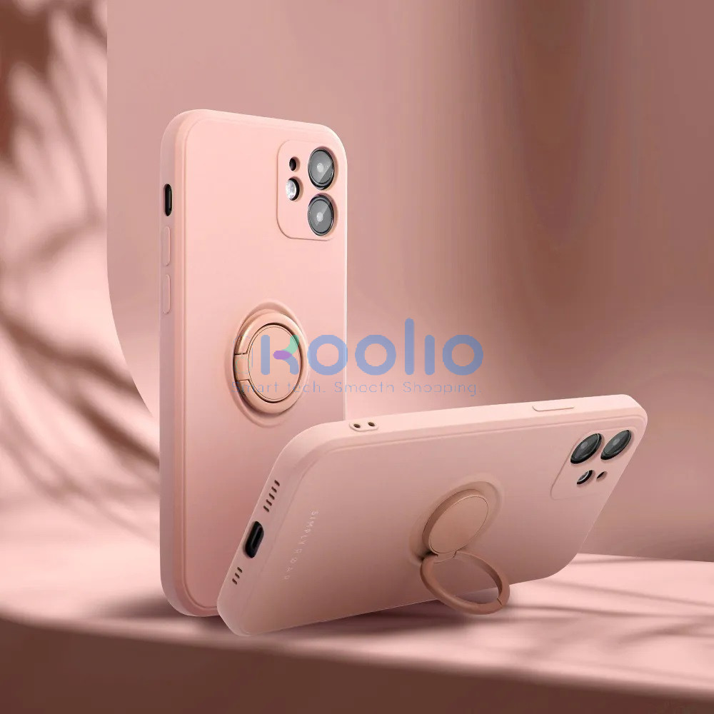Apple iPhone 16 Plus, Szilikon tok, stand, telefontartó gyűrű, Roar Amber, rózsaszín
