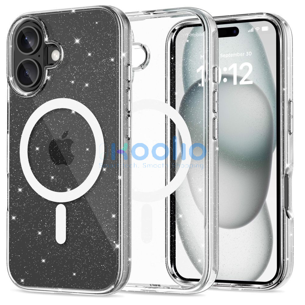 Apple iPhone 16, Műanyag hátlap védőtok + szilikon keret, Magsafe töltővel kompatibilis, csillogó hátlap, FlexAir Hybrid Magsafe Glitter, átlátszó