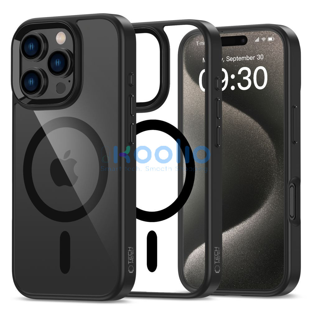 Apple iPhone 16 Pro Max, Műanyag hátlap védőtok + szilikon keret, Magsafe töltővel kompatibilis, Magmat Magsafe, átlátszó/fekete