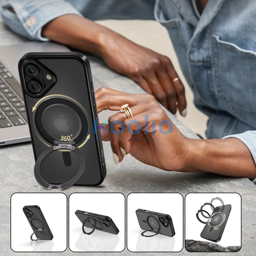 A tok kulcseleme egy 360 fokban forgatható gyűrű, amelyet különféle módokon lehet használni – állványként a kényelmes filmnézéshez, ujjfogóként a telefon biztonságosabb kézben tartásához, valamint a MagSafe funkciók támogatásához. Tökéletesen kompatibilis a MagSafe kiegészítőkkel, mint például a töltőkkel vagy a mágneses tartókkal.