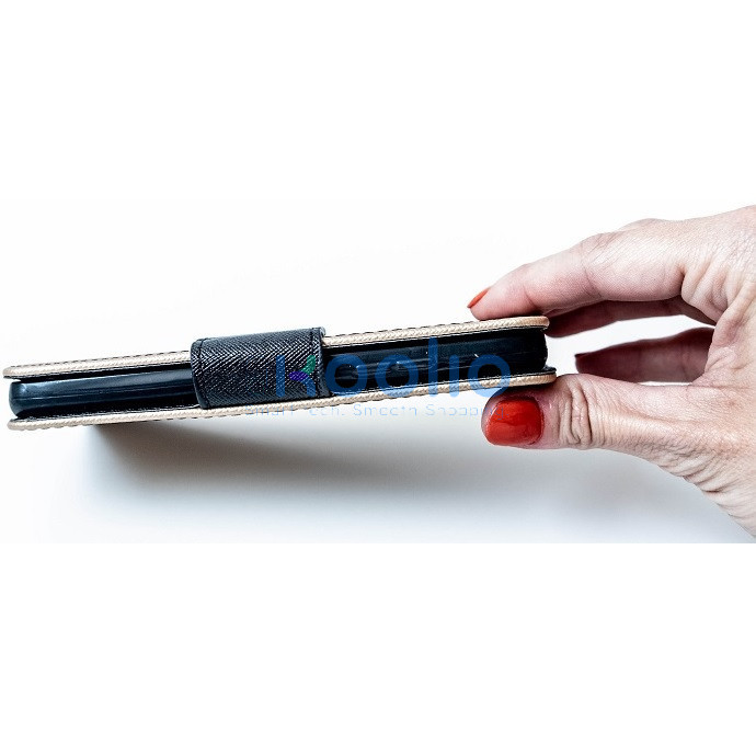 Apple iPhone 16 Pro, Oldalra nyíló tok, stand, Fancy Book, arany/fekete