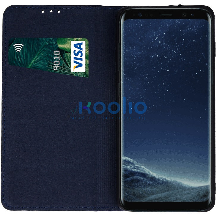 Apple iPhone 16, Oldalra nyíló tok, valódi bőrtok, stand, Smart Pro, sötétkék