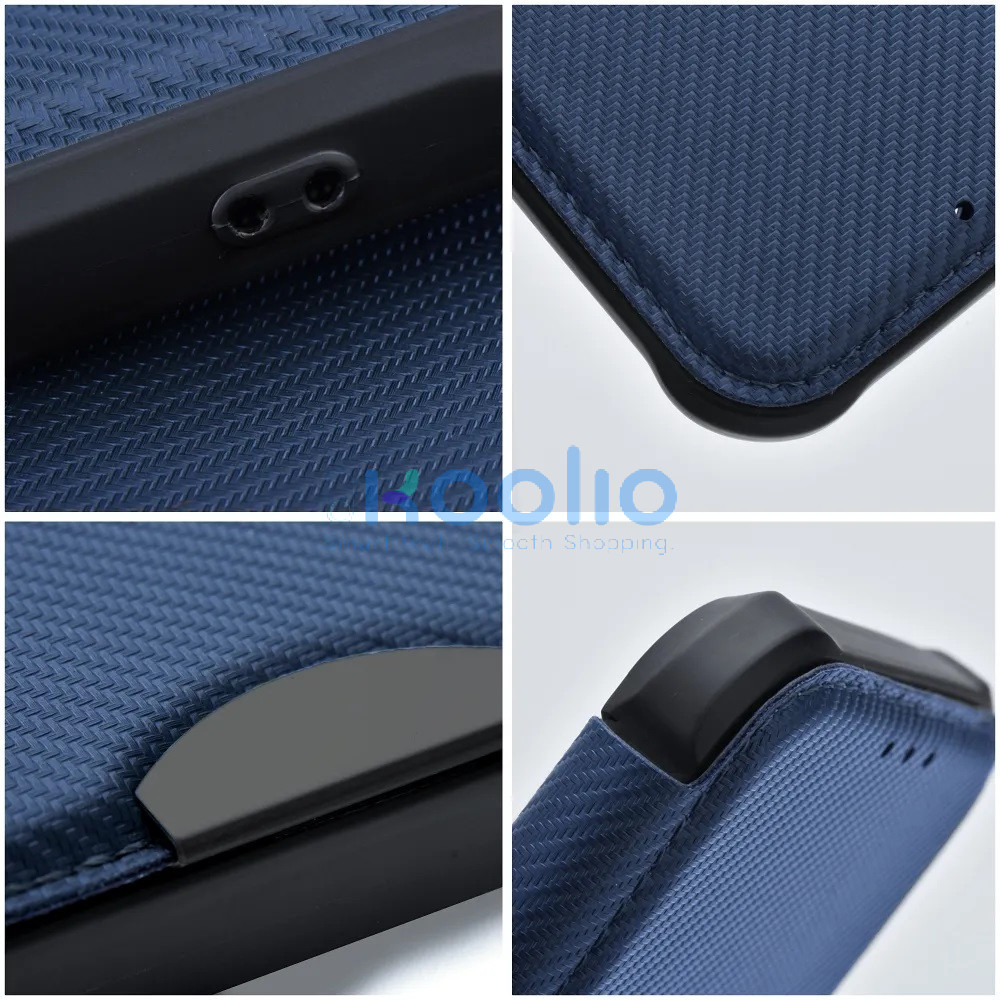 Apple iPhone 16 Plus, Oldalra nyíló tok, légpárnás sarok, bőrhatású, karbon minta, Razor Book, kék