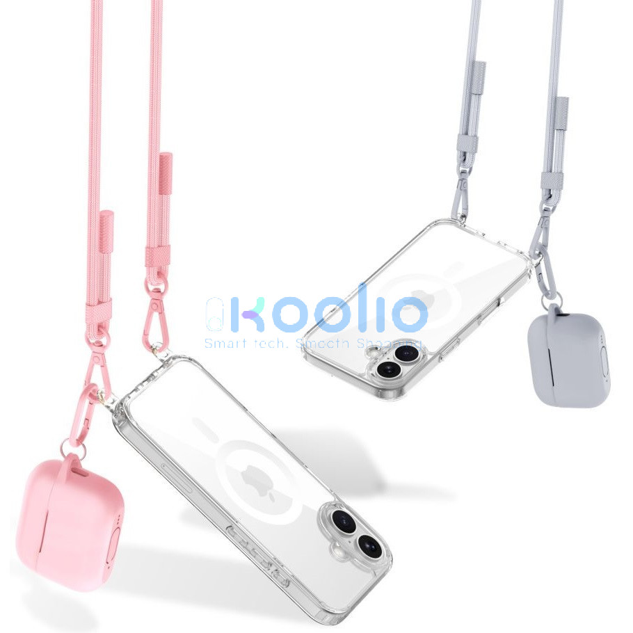 Apple iPhone 16, Szilikon védőkeret + műanyag hátlap, nyakbaakasztó, Magsafe töltővel kompatibilis, FlexAir Chain Magsafe, átlátszó (szürke, rózsaszín)
