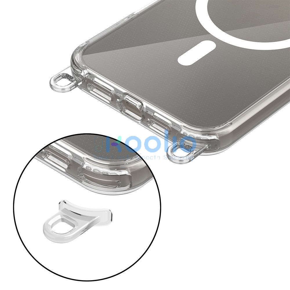 Apple iPhone 16 Pro Max, Szilikon védőkeret + műanyag hátlap, nyakbaakasztó, Magsafe töltővel kompatibilis, FlexAir Chain Magsafe, átlátszó (szürke, rózsaszín)