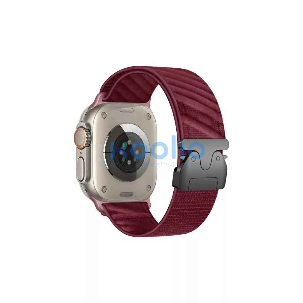 A szíj robusztus, fém csattal van ellátva, mely biztosítja a stabilitást és a biztonságot bármilyen környezetben. Sportos megjelenésével és az Apple Watch modern dizájnjához való tökéletes illeszkedésével egységes, stílusos megjelenést kölcsönöz a viselőjének.